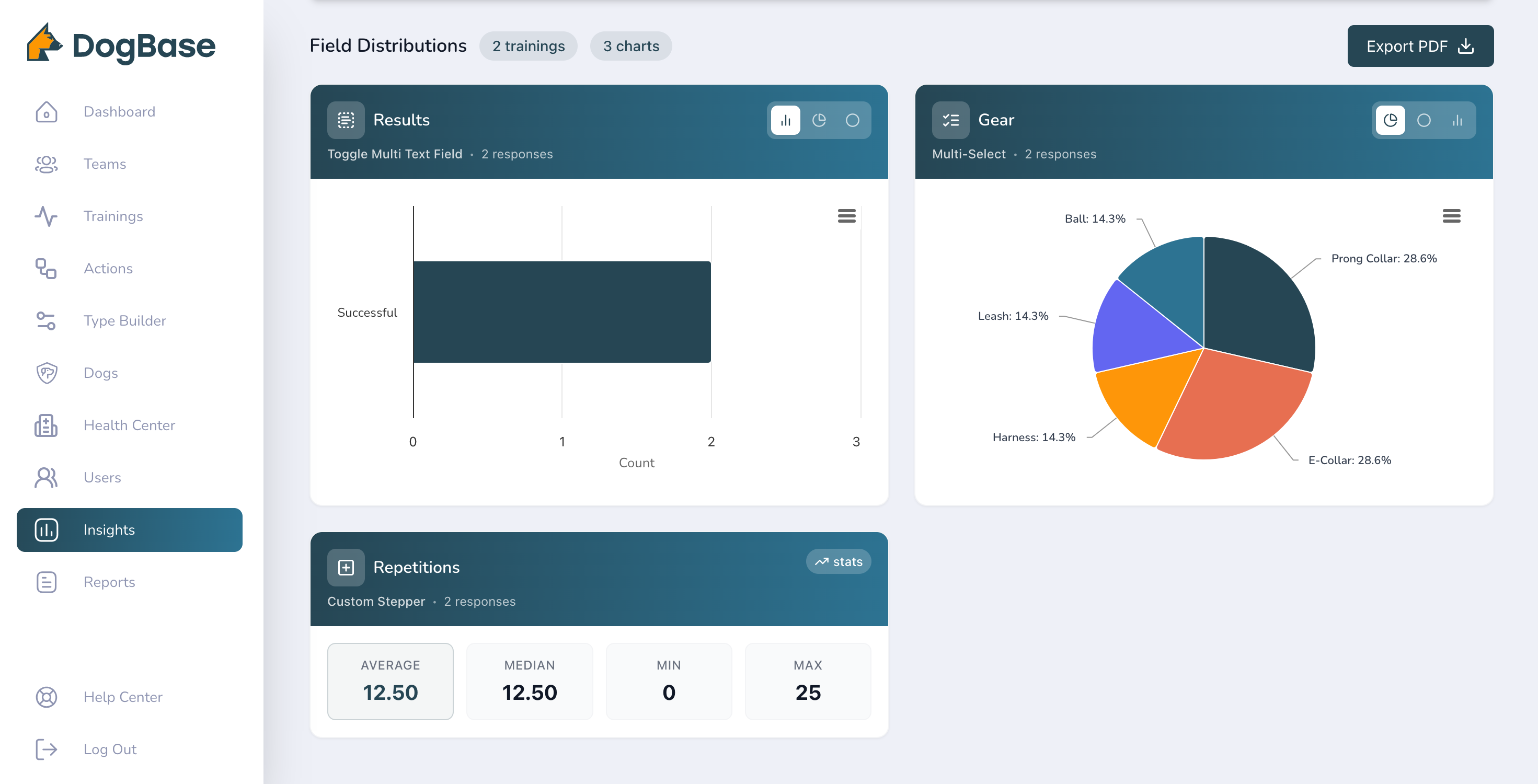 These aren't hypothetical examples — they're the kinds of questions working dog teams ask every day. Drilldown Insights gives you a structured way to answer them with your own data.