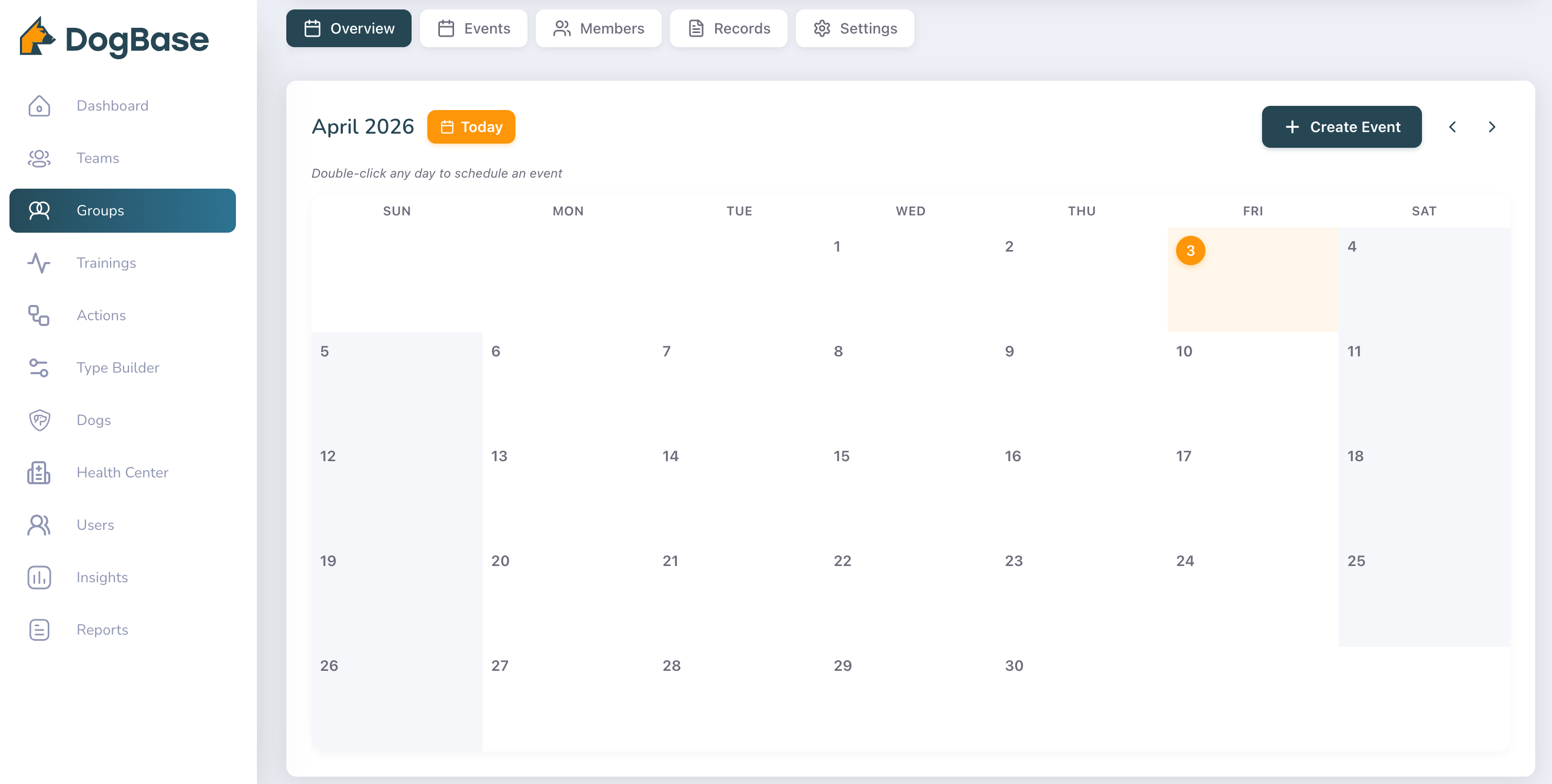 DogBase Events gives teams a dedicated structure for planning and running